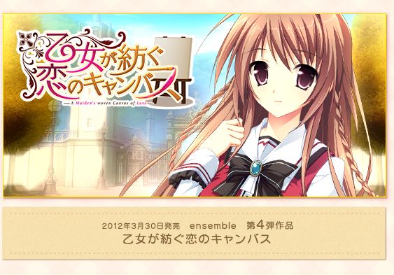 名前 ユーザidを使用しないで書き込む ユーザーidを使う ログインする 画像コード 画像に記載されている文字を下のフォームに入力してください。乙女が紡ぐ恋のキャンパス、ドラクリオットは、キャラ萌えゲーとしてはオススメしてもいいんじゃないかなレベル スレ的にはまぁ暇があるならお好きにって感じ。 270 :名無したちの午後 sage :(日) IDusruDki0 乙女が紡ぐ恋のキャンパス乙女が紡ぐ恋のキャンバス のmixiコミュニティ。PCゲームブランド ensemble 様より発売予定 『乙女が紡ぐ恋のキャンバス 』 のコミュニティです -原画- きみしま青 -サブ原画- 了藤誠仁 -シナEnsemble (ゲームブランド) > 乙女
